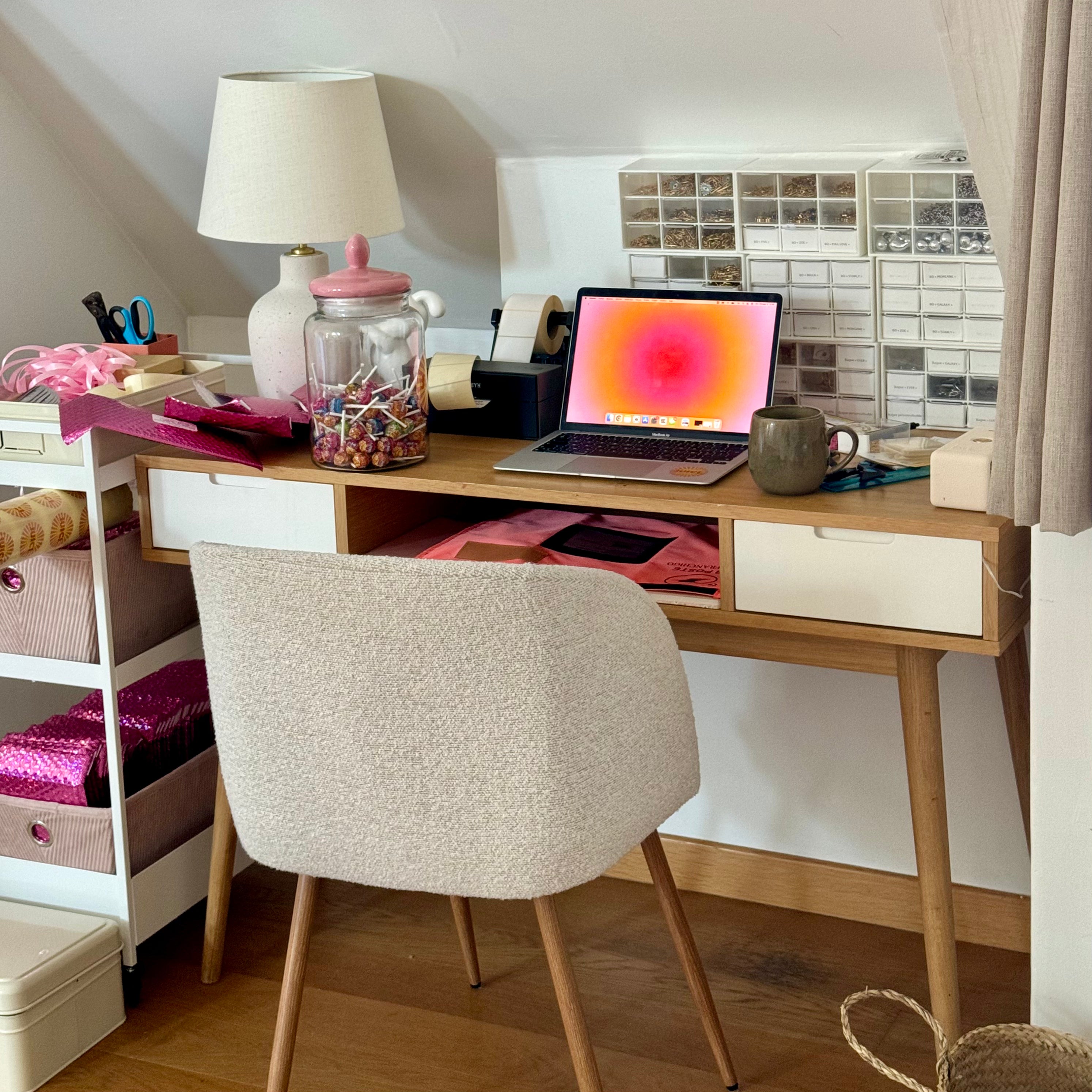"C'est depuis mon appartement que je crée et expédie chaque jour vos commandes avec amour. Autant vous dire que la table de ma salle à manger est souvent encombrée (oups)."